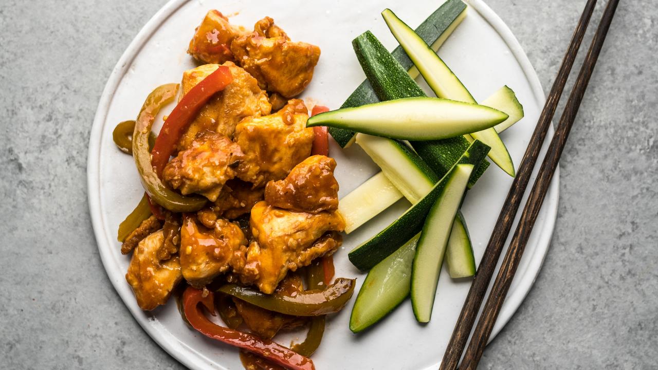Hoisin Chicken With Quick Pickled Veg And Green Onion Pancakes