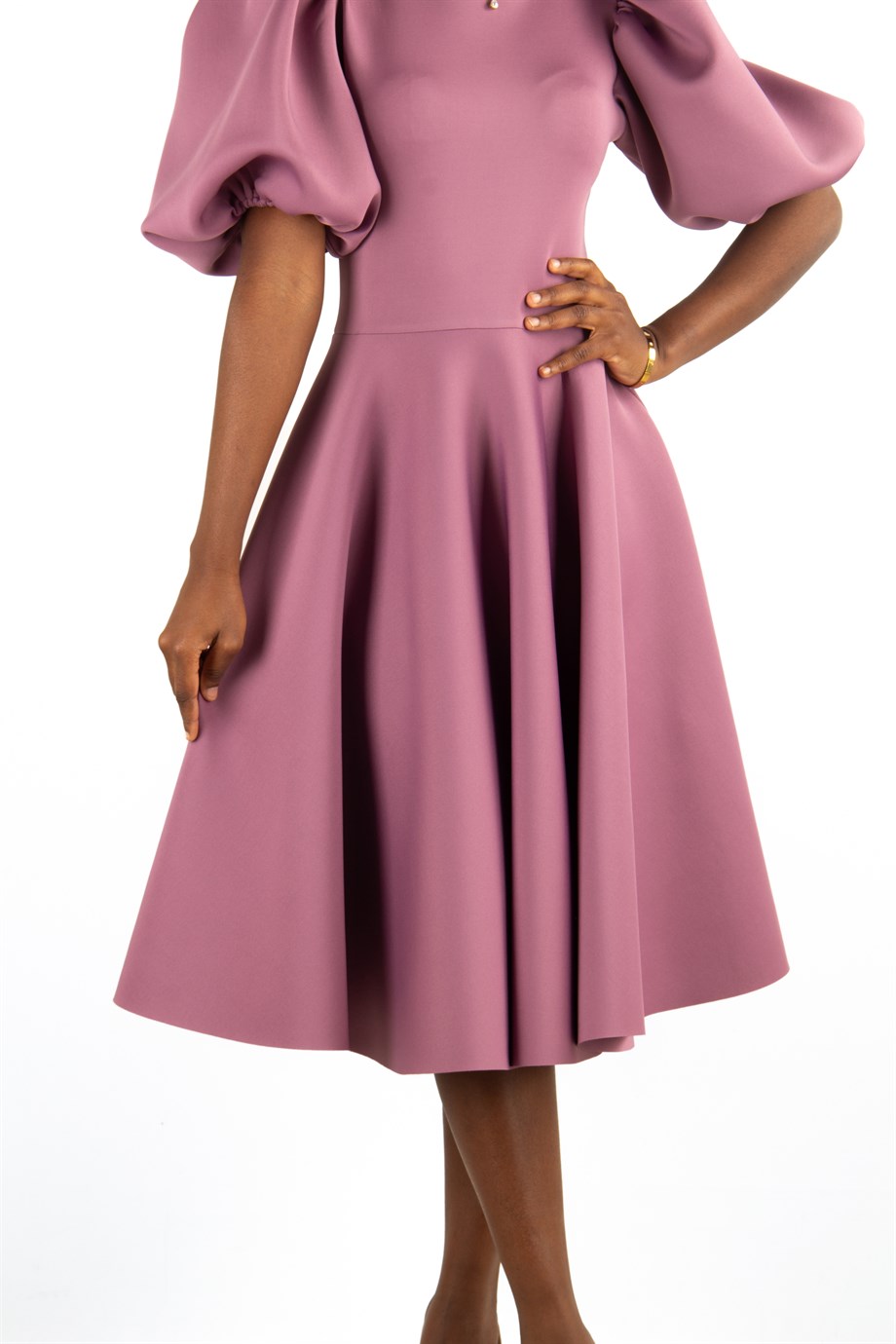 Bishop Sleeve Scuba Dress Rusty Rose Wholesale Womens Clothing Vendors For Boutiques